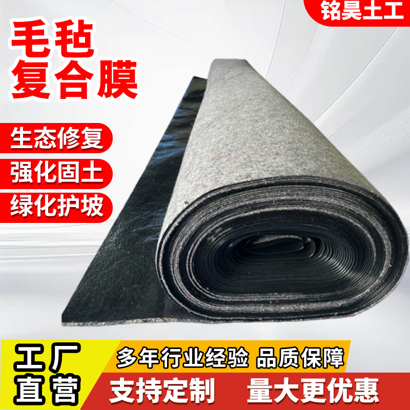 加厚毛毡复合膜两布一膜防水防寒防潮防渗淋膜工程养护毛毡复合膜