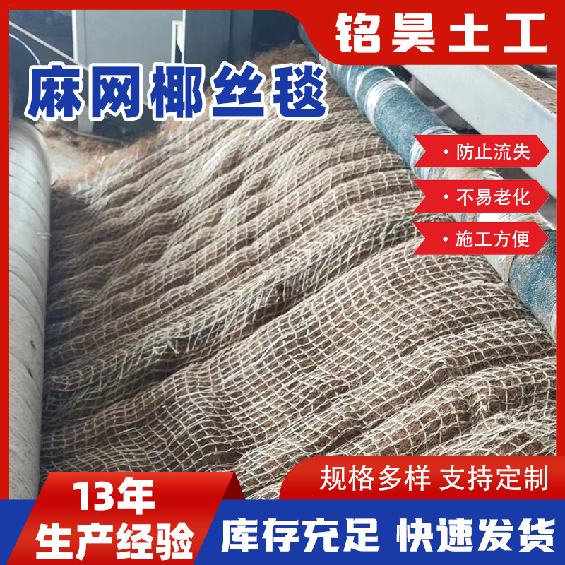 麻网椰丝毯生态绿化加筋抗冲草籽毯生态护坡河道绿化护坡椰丝毯