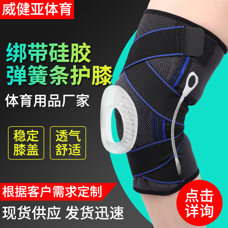 绑带硅胶护膝运动护膝足球跑步骑行透气加厚绑带硅胶弹簧条护膝