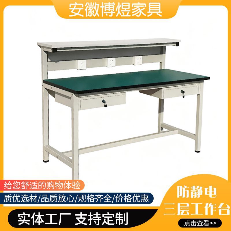 加厚承重防静电三层工作台带抽屉储物柜重型电子组装维修车间标配