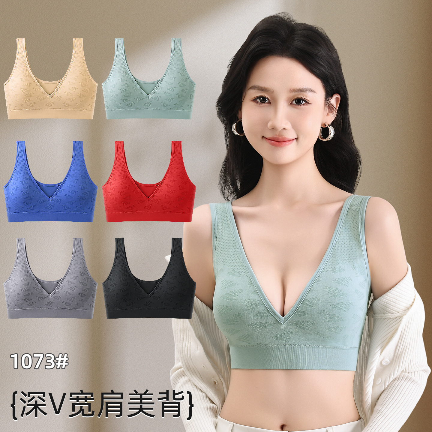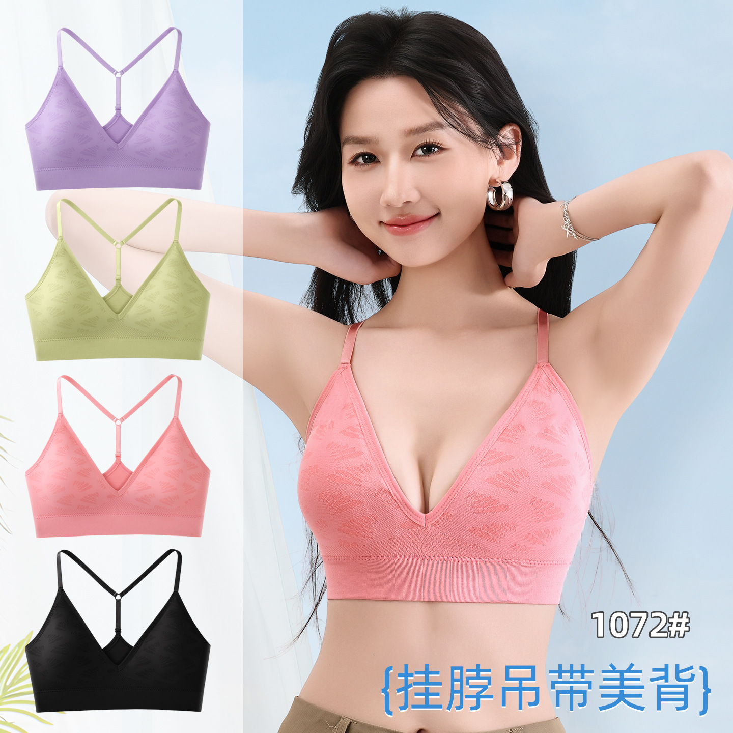 新款无缝美背性感镂空设计无束缚感舒适透气无钢圈可拆卸胸垫内衣