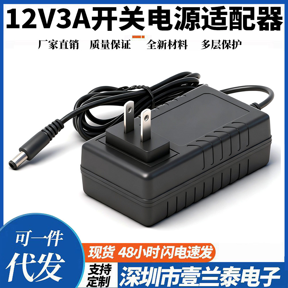 厂家供应12V3A插墙式电源适配器 12V36W监控显示器led灯水泵电源