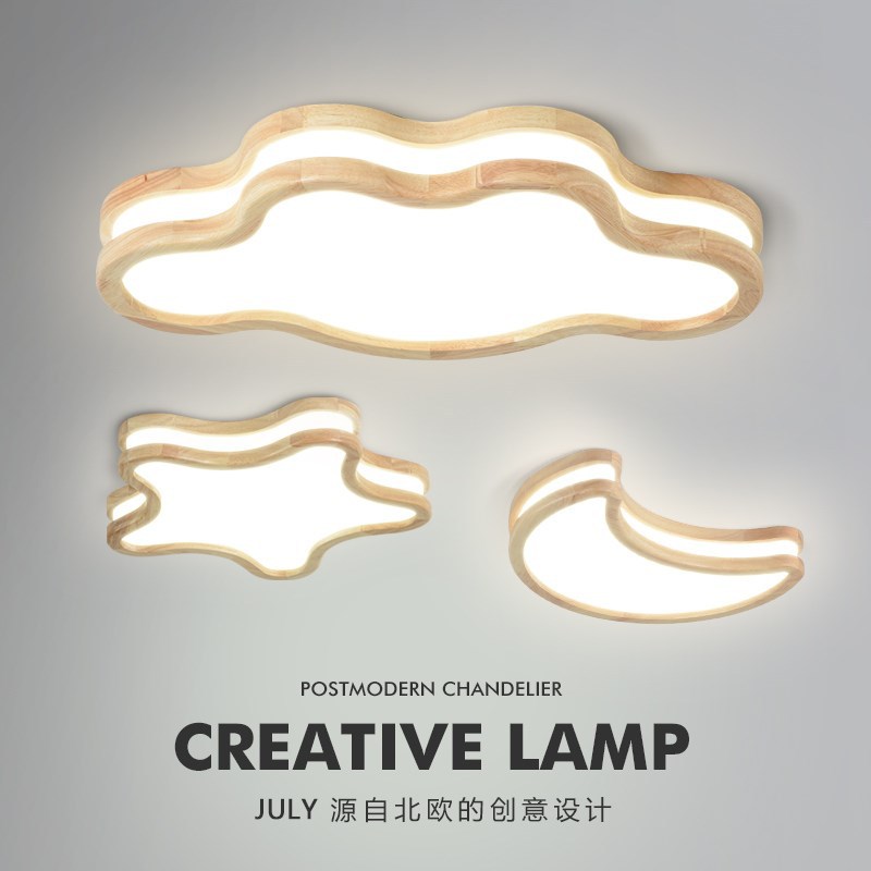 卧室北欧现代简约实木五角原木色家用房间灯具创意led灯中山灯具