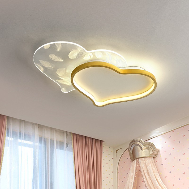主卧室灯轻奢大气个性后现代客厅吸顶灯金色亚克力心形羽毛儿童灯