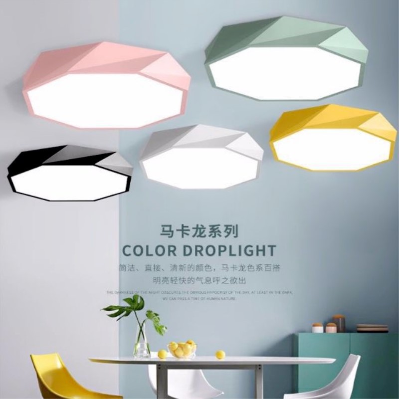 马卡龙吸顶灯lED护眼卧室灯 北欧现代卧室客厅过道儿童菱八角形灯