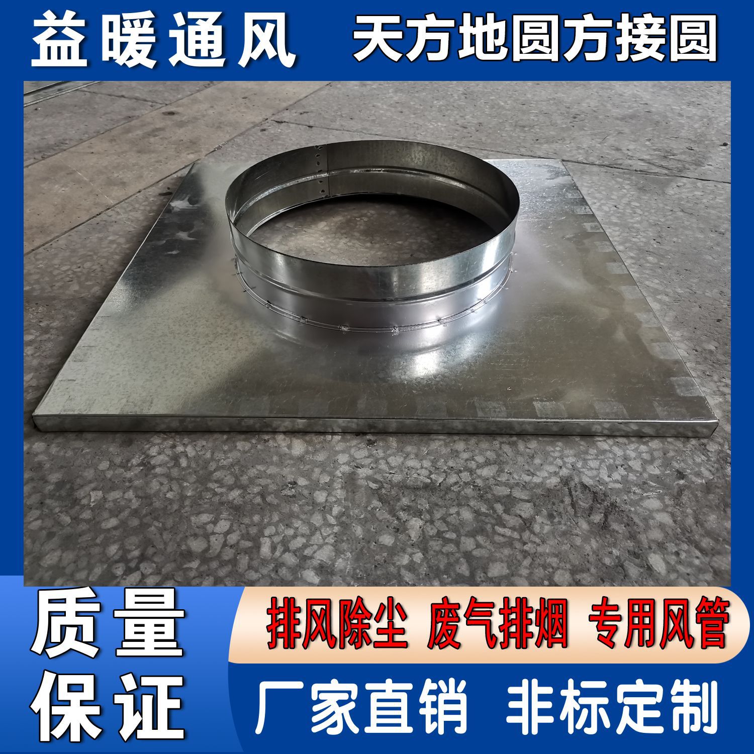 镀锌白铁皮风口方转圆接头 空调方变圆平板内接头 天圆地方加工
