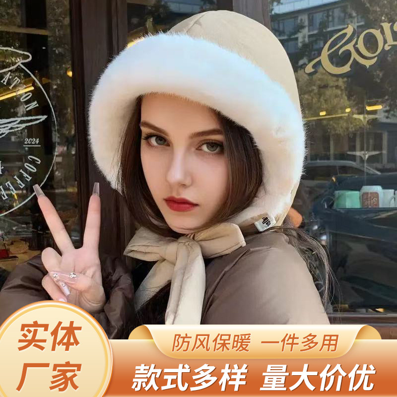 羽绒棉毛绒帽子女款秋冬季巴拉克拉法帽大头围加厚保暖护耳雷锋帽