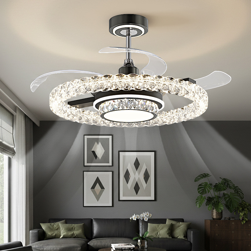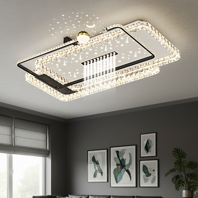 新款客厅餐厅隐形风扇灯意式极简餐厅卧室吊灯一体轻奢款中山灯具