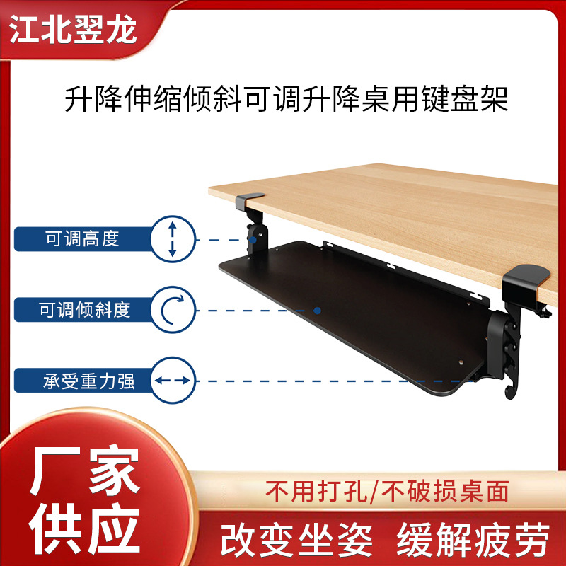 可调节升降伸缩倾斜电脑桌键盘架 桌面可抽屉收纳架桌子键盘架