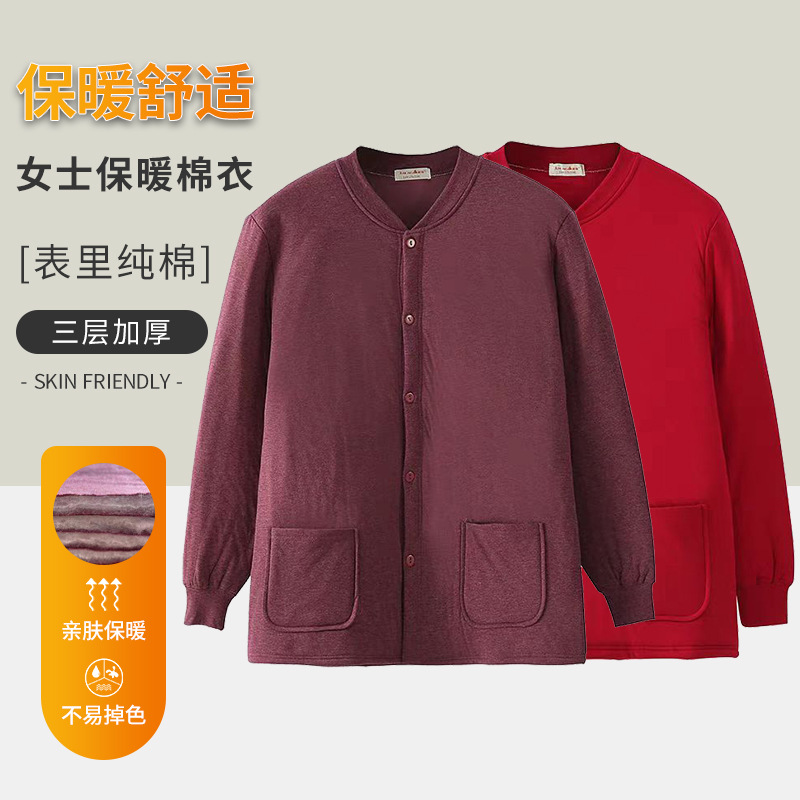 中老人女士保暖内衣套装夹棉加厚纯棉大码对襟开衫老人棉衣