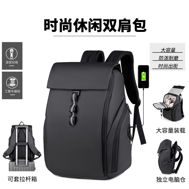 休闲商务电脑包背包男一体箱式设计双肩包印LOGO翻盖双肩包现货