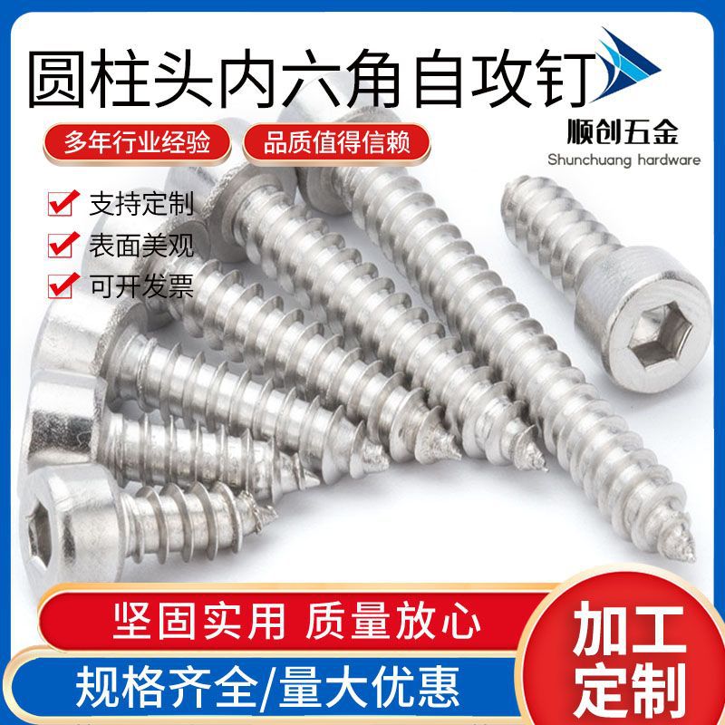 304不锈钢圆柱头内六角自攻钉 杯头不滚花自攻 音响螺丝钉M2-M6