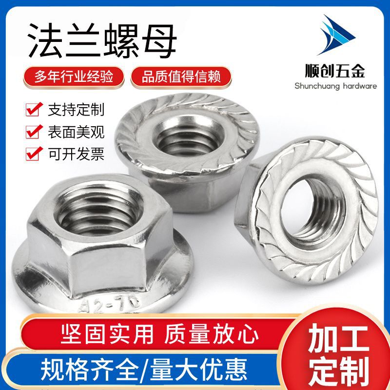 201不锈钢六角法兰面螺母 DIN6923带齿紧锁防松法兰螺帽M3-M16