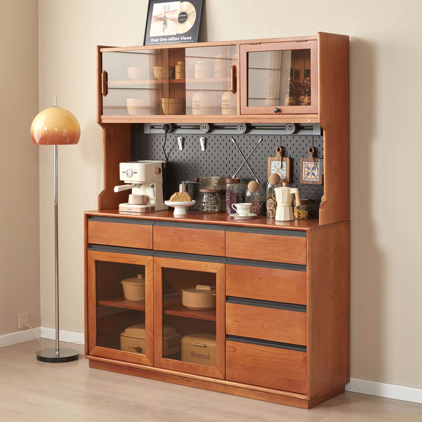 北欧实木樱桃木餐边柜中古风多功能餐厅一体收纳柜简约靠墙储物柜