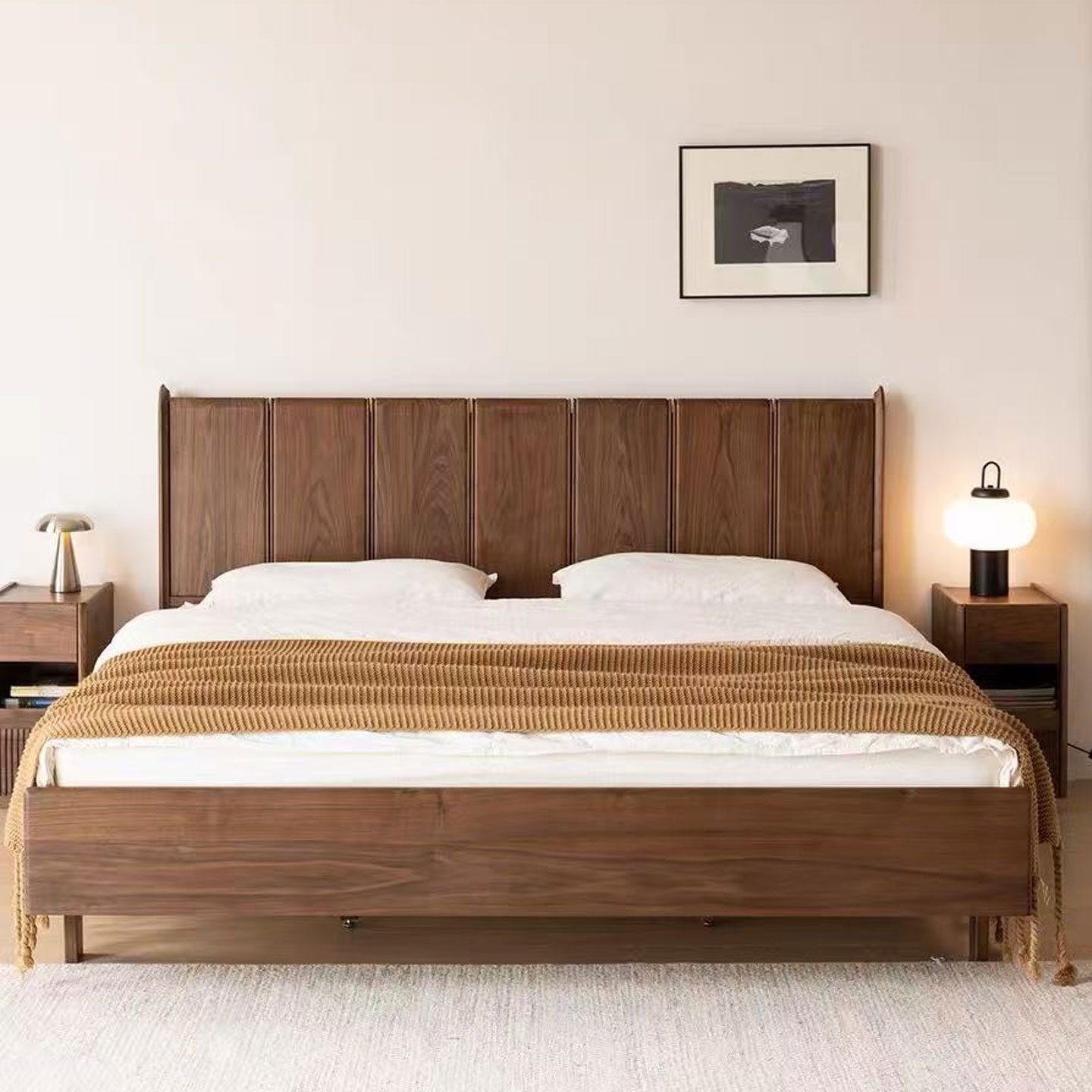 北美黑胡桃木实木双人床北欧樱桃木原木卧室悬浮法式复古双人大床