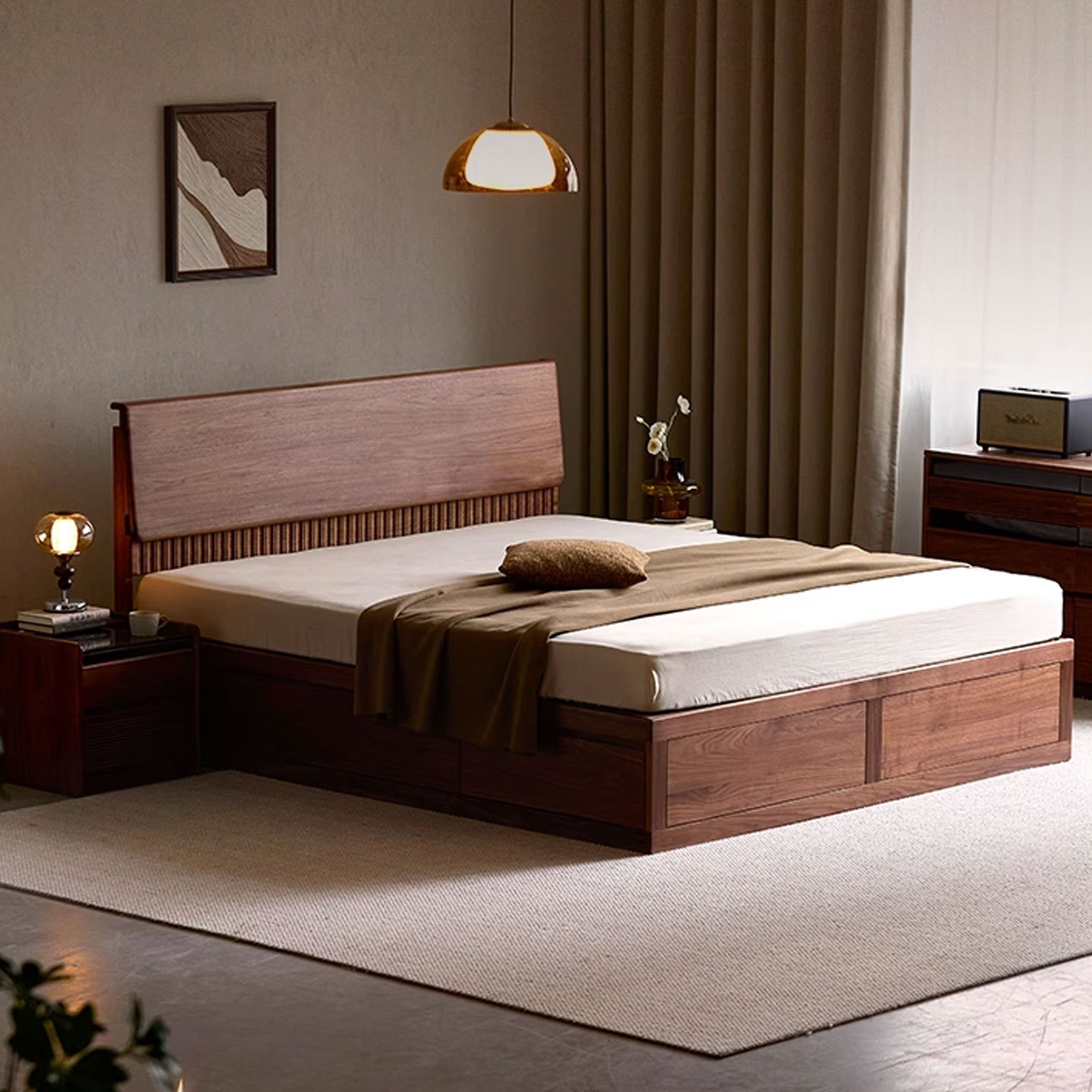北美黑胡桃木箱体床现代简约落地抽屉床北欧实木樱桃木双人储物床