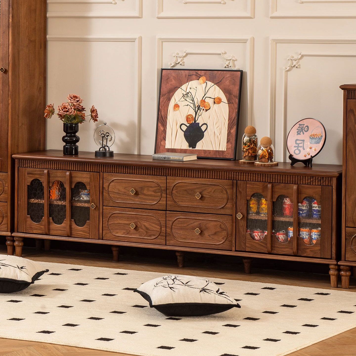 北美黑胡桃木电视柜美式复古全实木收纳柜客厅家用简约落地储物柜