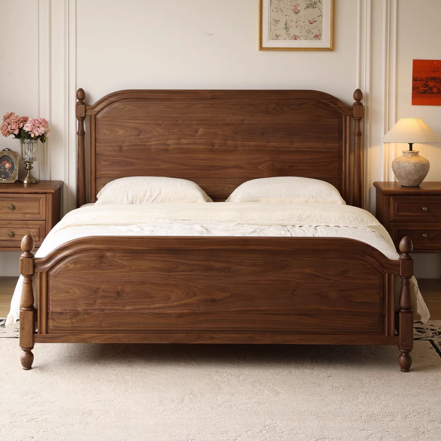 北美黑胡桃木法式床现代简约复古床北欧实木双人中古美式主卧婚床
