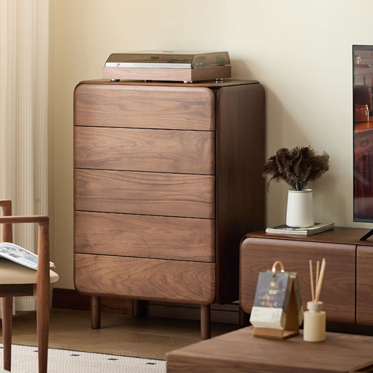北美黑胡桃木五斗柜现代简约卧室抽屉柜北欧全实木樱桃木收纳斗柜
