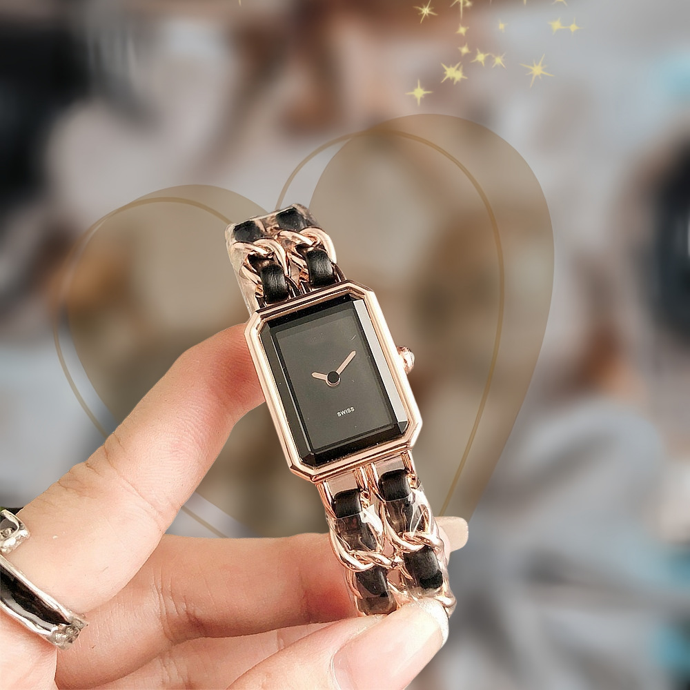 跨境电商热卖全金方盘女表简约钢带黑盘腕表工厂批发女士手表