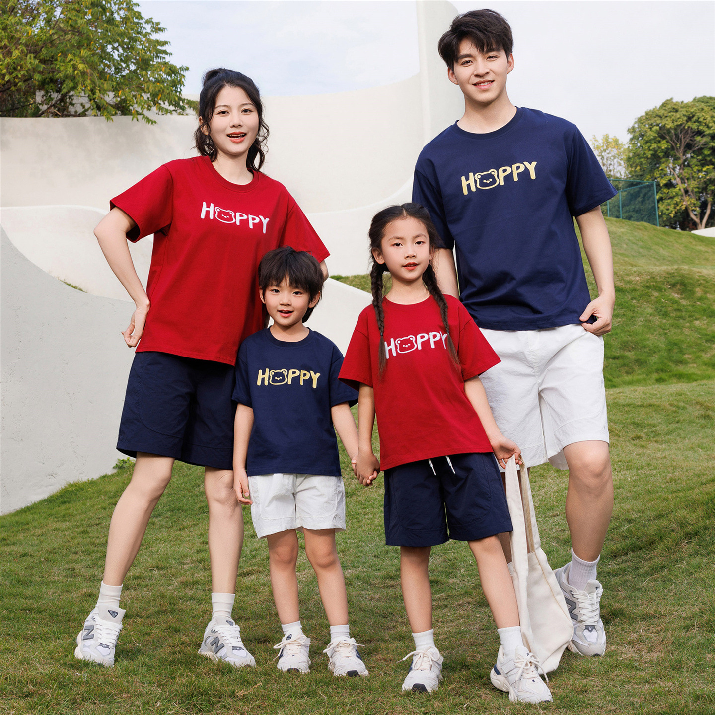 亲子装夏季新款短袖t恤一家三口四口休闲母子母女速干短裤套装