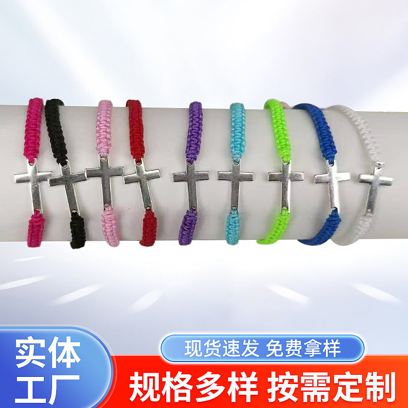 厂家批发新款不锈钢十字架情侣手绳供应 手工编织手链时尚简约