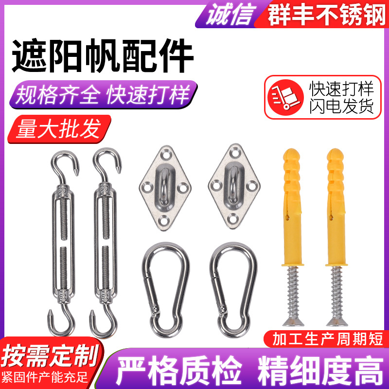 不锈钢遮阳帆配件遮阳棚菱形扣拉紧器弹簧勾花篮套装五金工具