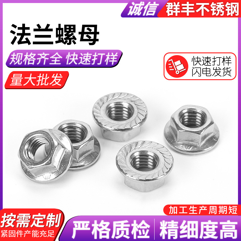 不锈钢六角法兰螺母法兰面m8镀锌花齿防滑带垫螺丝304法兰螺母
