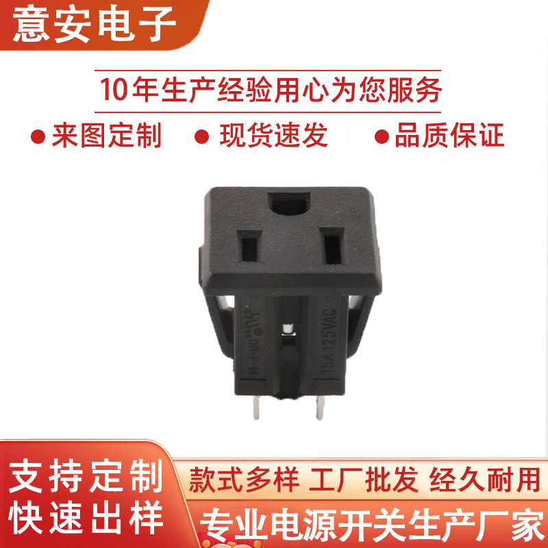 嵌入式三孔大电流直脚AC插座美标电源插座焊接式台式机箱品字插座