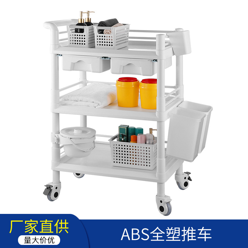 美容推车abs全塑推车三层加厚美容院工具车多功能置物架塑料推车