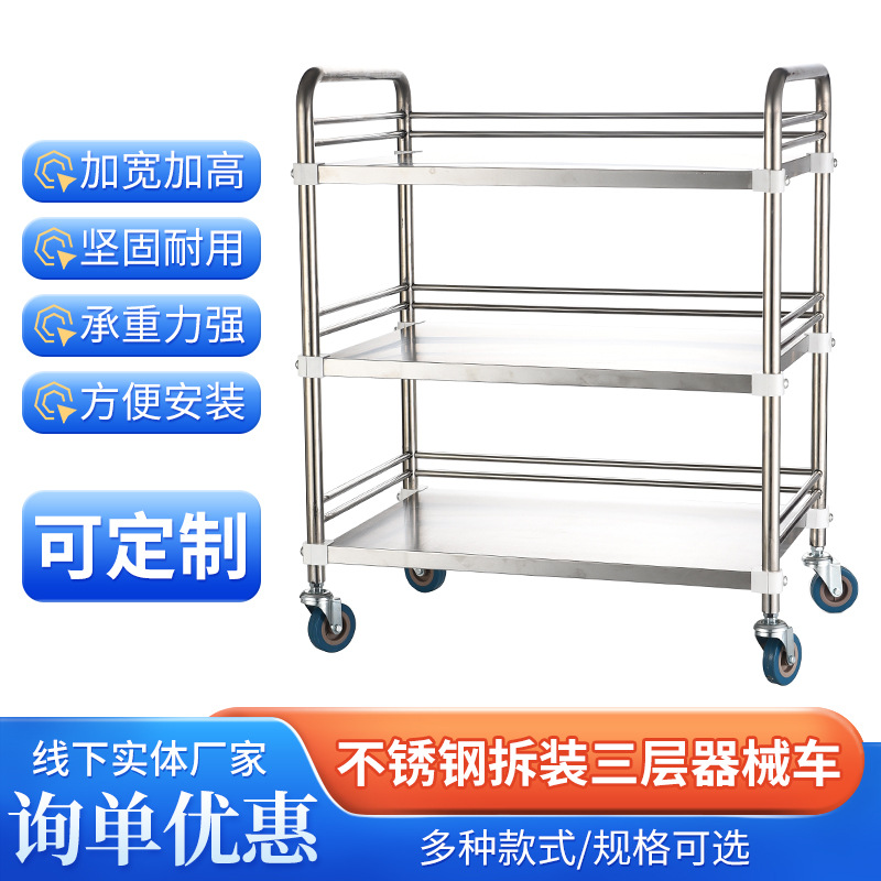 美容院手推车医院护士三层无抽屉器械车不锈钢推车仪器置物工具车