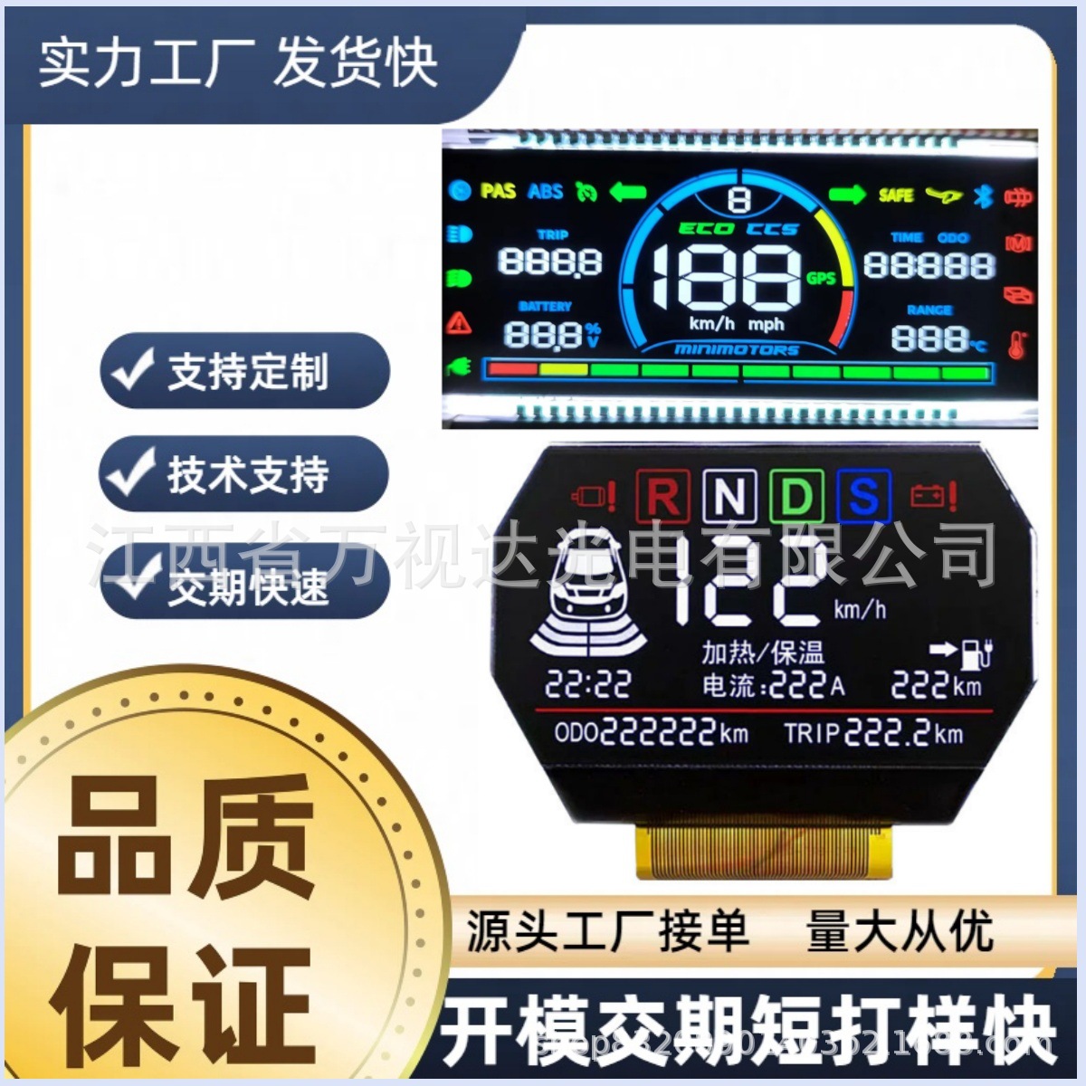 汽车仪表LCD液晶屏越野车VA屏黑底白字段码屏全视角断码显示屏