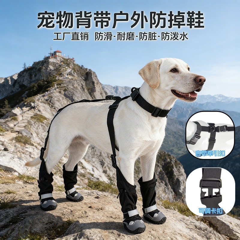 跨境热卖宠物背带鞋一体式防滑保暖不掉脚狗鞋户外加工用品服饰