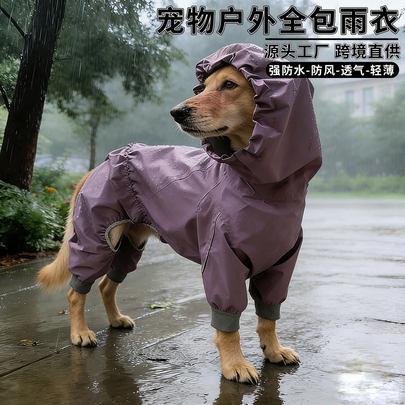 跨境工厂夏季宠物狗狗雨衣冲锋衣四脚全包中大型犬边牧现货批发