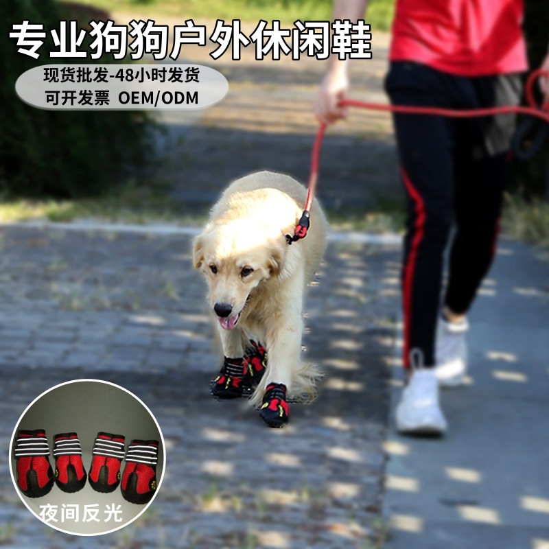 跨境工厂狗狗鞋子户外防水夜间反光外出宠物鞋子防掉防滑狗鞋