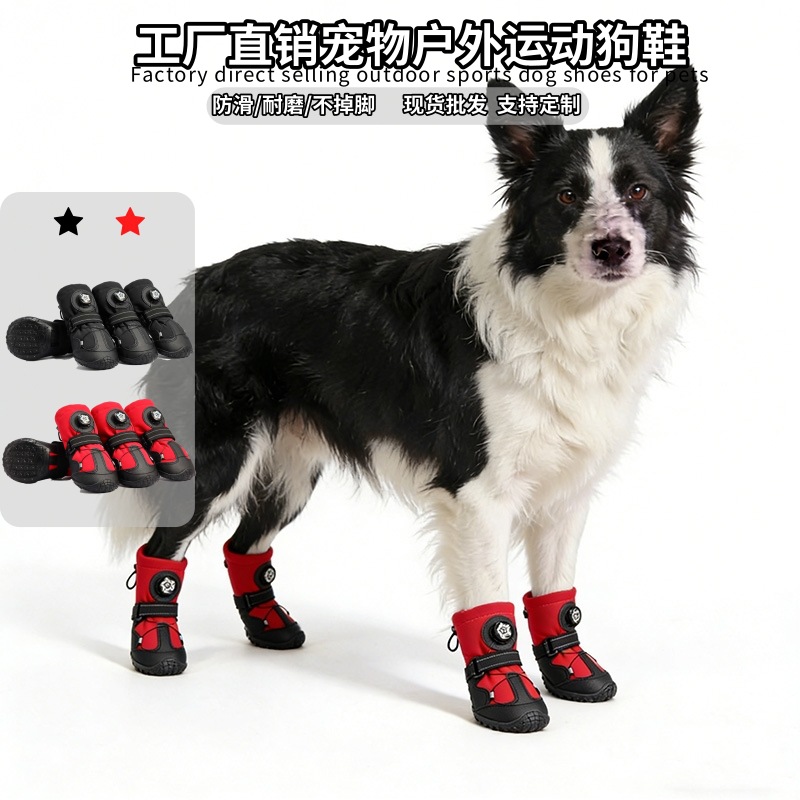 跨境热卖旋钮宠物鞋子四季防滑耐磨狗狗鞋子中大型萨摩金毛狗鞋