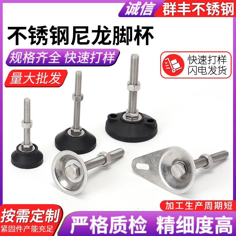 304不锈钢尼龙脚杯固定地脚螺丝螺栓可调节脚垫支撑脚M6-M120批发