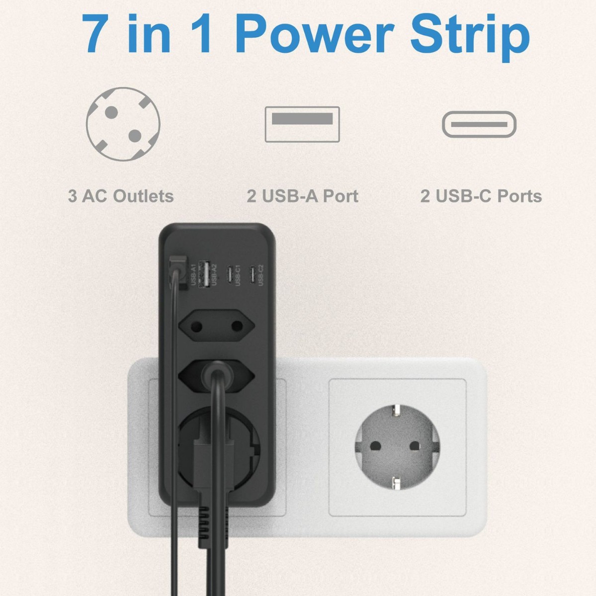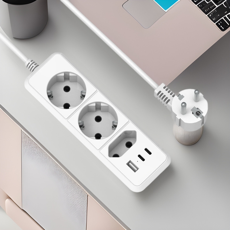 欧规多口TYPEC充电插头排插转换器扩展插座一转三墙壁插排接线板