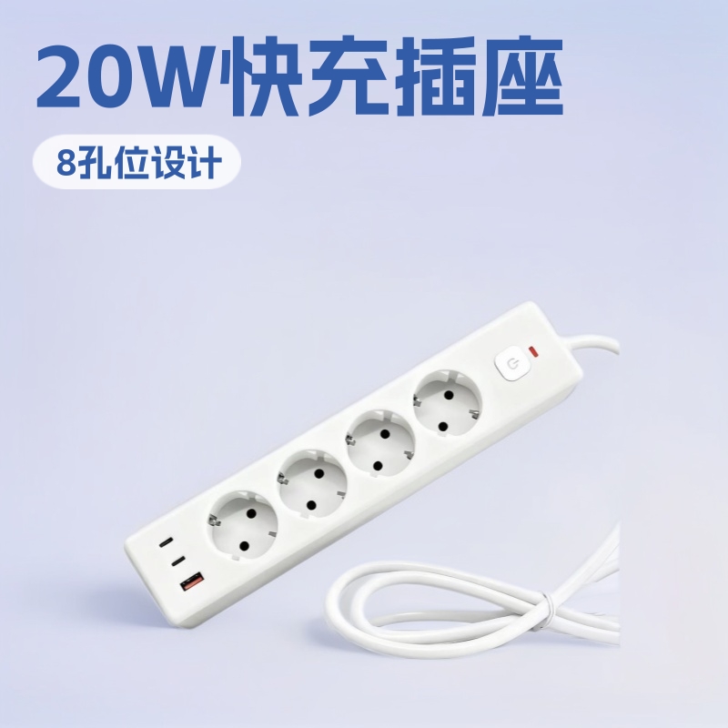 4位欧规家用排插20W电源插座欧标CE过带载保护电源板快充电源插座
