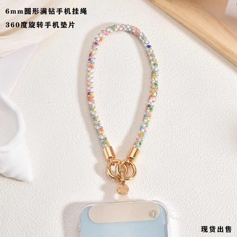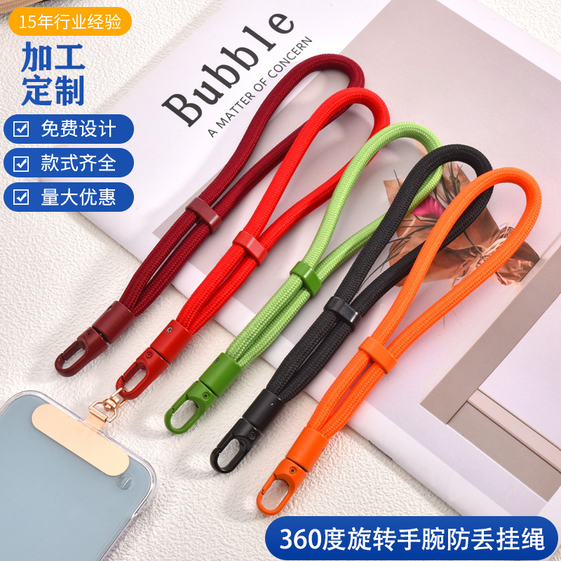 全钻手腕手机壳短挂绳360旋转夹片防丢通用耐用户外结实手机挂链