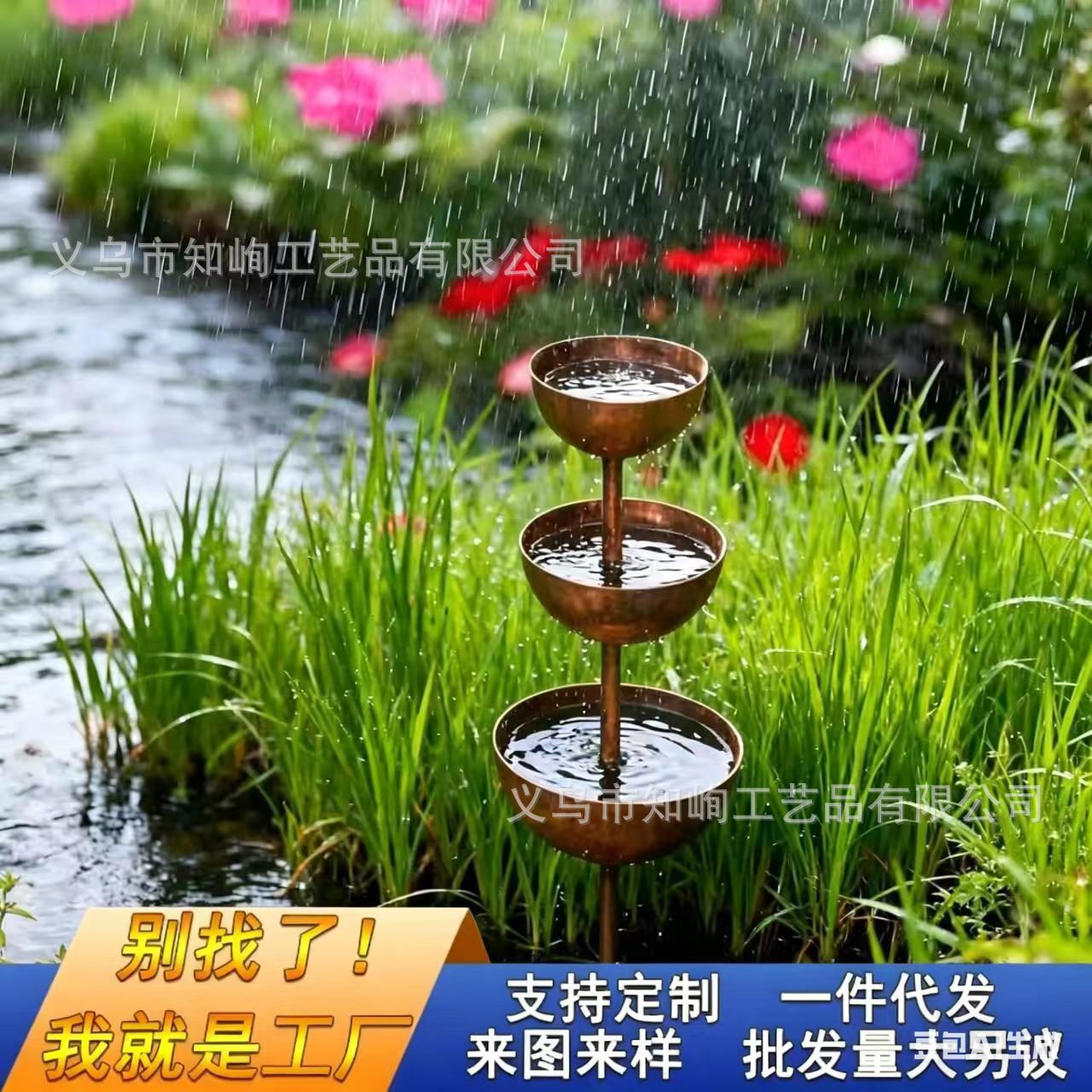 跨境爆款RainCatcherPlant Support Metal户外三杯一体雨水收集器