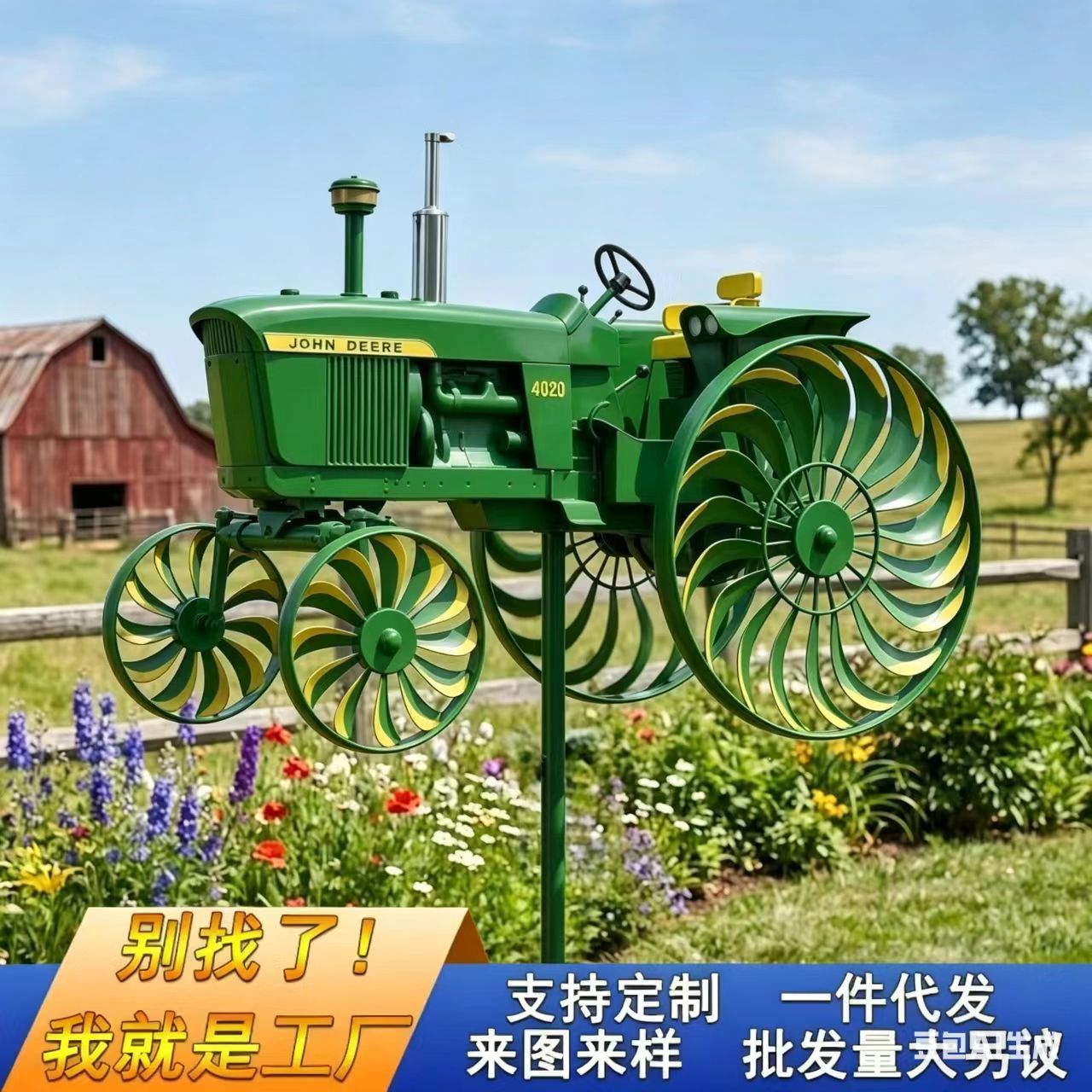 跨境新品Garden Wind Spinner户外花园风车绿色拖拉机风车旋转轮