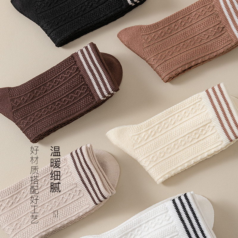 袜子女秋冬中筒袜 羊毛袜 冬天堆堆袜长筒袜保暖月子袜女士地板袜