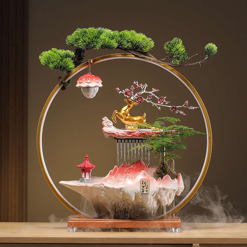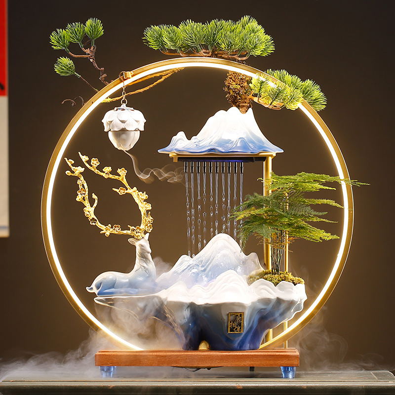 创意招财鹿流水摆件家居玄关客厅办公室桌面循环喷泉开业乔迁礼品