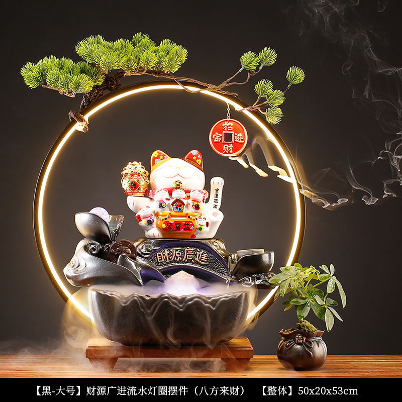 安隆堂创意招财猫流水鱼缸摆件办公室装饰循环水桌面乔迁前台礼品