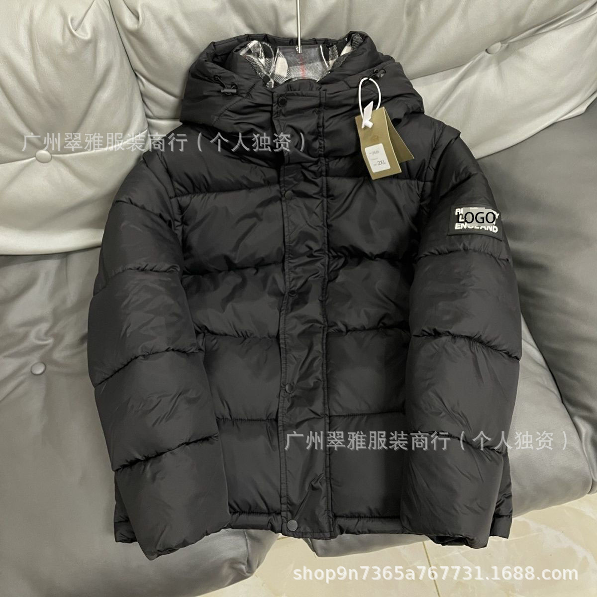 巴家保暖外套可拆卸袖男女同款宝莉棉服格纹连帽防寒冬季夹克背心