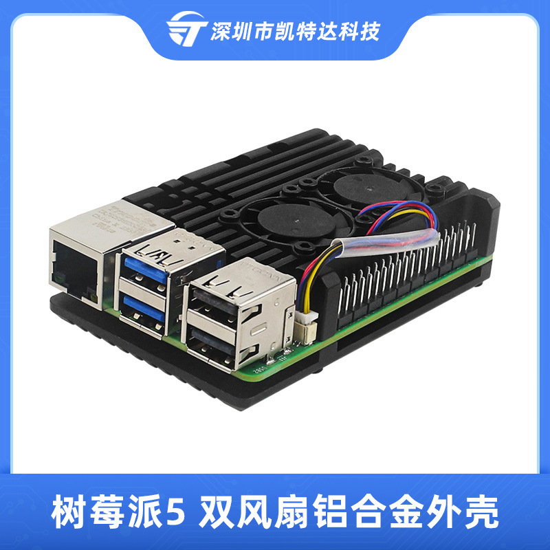 树莓派5代5B双风扇铝合金外壳Raspberry pi 5被动散热盒子金属壳