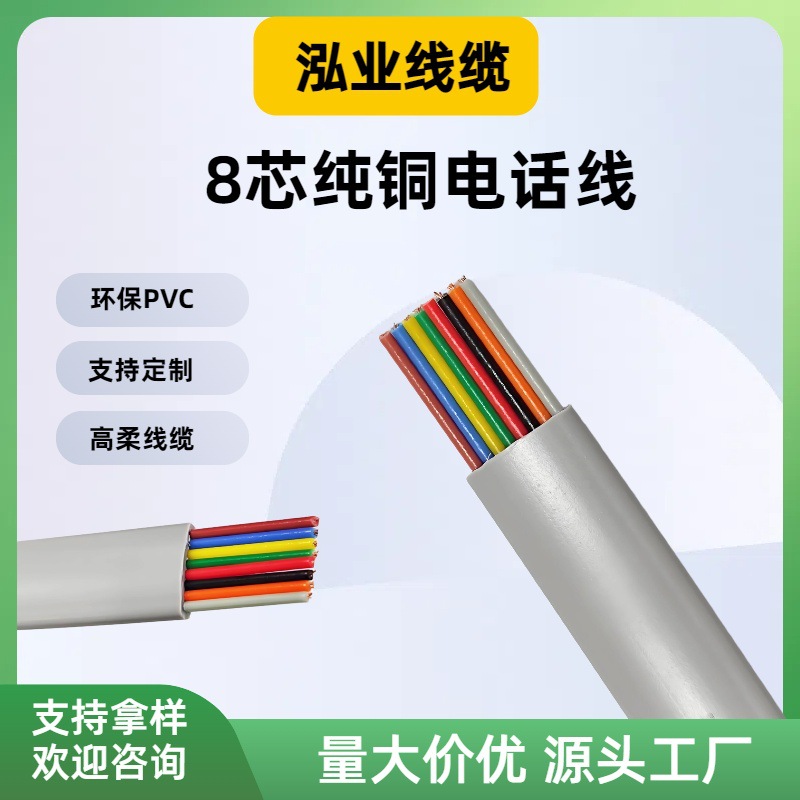 8芯扁平电话线20251无氧铜听筒座机传真机通用连接线源头工厂