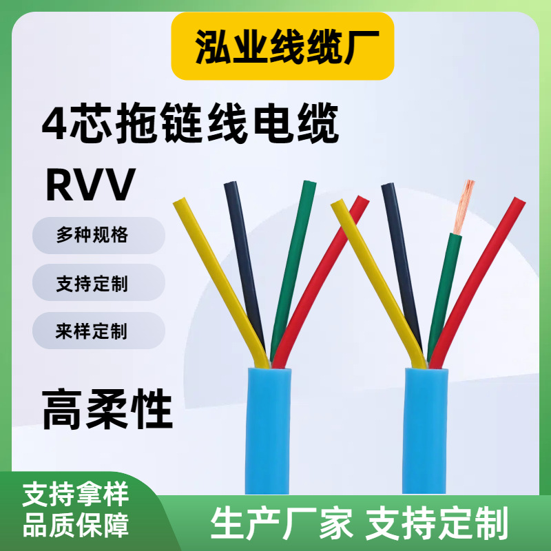 RVV 高柔性拖链电缆蓝色4芯工业机器人耐折护套线电线缆厂家可定