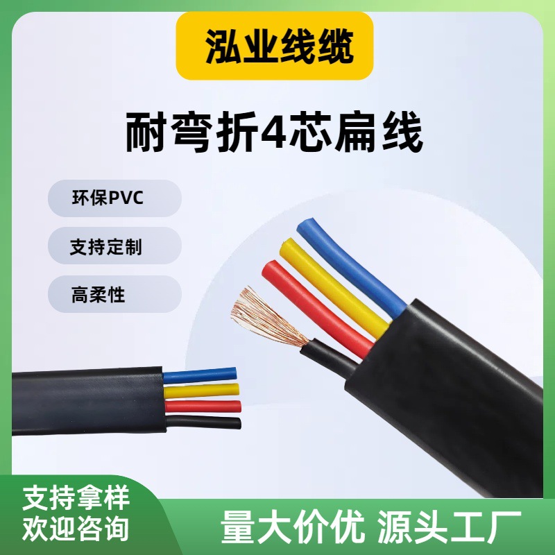 高柔软耐弯折4芯TVVB扁线电动伸缩门 电梯 随行车专用高频移动线